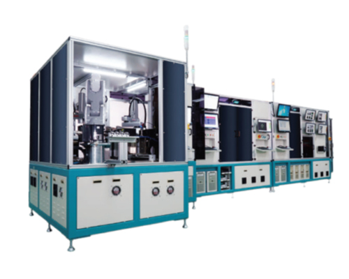 The De- Gauss and Flash curing system is used in LED production to remove trapped gas and cure heat-curable material inside LED cavities. It has 4 de-gas chambers, 2 pre-curing chambers, 1 snap-curing chamber, and 1 cooling station. This setup removes air bubbles and cures the material immediately, ensuring better quality LEDs. By combining several steps into one system, this machine increases the production speed. It also gives full control with programmable settings for de-gassing, curing, and cooling temperatures.